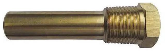 California Proposition 65: This product contains a chemical known to the State of California to cause birth defects or other reproductive harm. Industrial Thermowell, Internal Thread Size 5/8-18 UNF, Stem Length 3 in, Process Connection 1/2 in NPT, Insertion Length 2 13/100 in, Material Brass, Bore Dia. 0.447 in, Shank Dia. 0.62 in, Socket Length 3.25 in, Wrench Allowance 0.31 in. This item has been restricted from sale in the following state (s): []