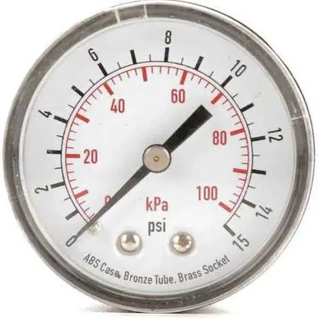 ZORO SELECT 4FMC3 Pressure Gauge, Commercial, 0 to 15 psi, 2 in Dial, Acrylic
