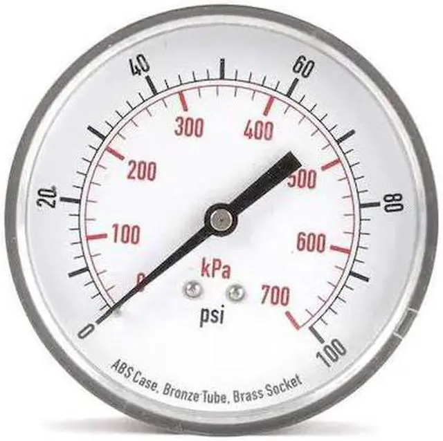 California Proposition 65: This product contains a chemical known to the State of California to cause birth defects or other reproductive harm. Pressure Gauge, Test, 3 1/2 in, Basic Gauge Case Material Plastic, Basic Gauge Wetted Parts Brass / Bronze, 1/4 in, MNPT, Gauge Connection Location Center Back, 0 to 100, psi, Gauge Secondary Range Units kPa, Gauge Secondary Range Values 0 to 700, +/-3-2-3 Percent, Gauge Panel Mountable No, Liquid Filled No, Gauge Primary Range Smallest Graduation 2, Gauge Case Material ABS Plastic, Gauge Case Color Black, Calibration Certificate Included No. This item has been restricted from sale in the following state (s): []