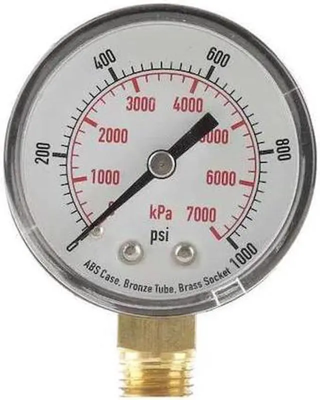 California Proposition 65: This product contains a chemical known to the State of California to cause birth defects or other reproductive harm. Commercial Pressure Gauge, Nominal Dial Size 2 in, Accuracy +/-3-2-3 Percent, Gauge Case Material ABS Plastic, Process Connection Type NPT, Process Connection Gender Male, Lens Material Acrylic, Process Connection Size 1/4 in, Field Fillable No, Process Connection Location Bottom, Case Color Black, IP/NEMA Rating Not Rated, Primary Pressure Range 0 to 1, 000, Dry Dampening Feature None, Vibration Resistance None, Dial Color White, Pressure Gauge Type Commercial Pressure Gauge. This item has been restricted from sale in the following state (s): []