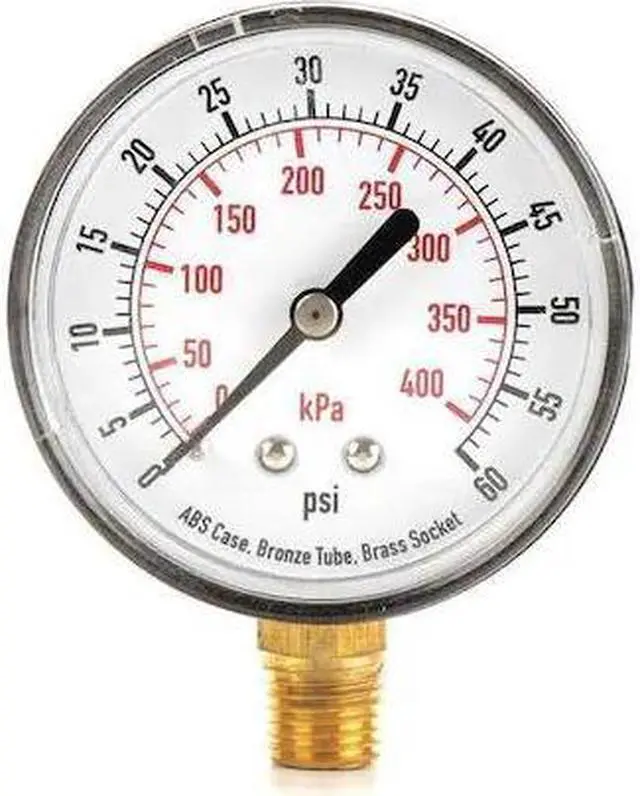 ZORO SELECT 4FLV8 Commercial Pressure Gauge, 0 to 60 psi, 2 1/2 in Dial, 1/4 in