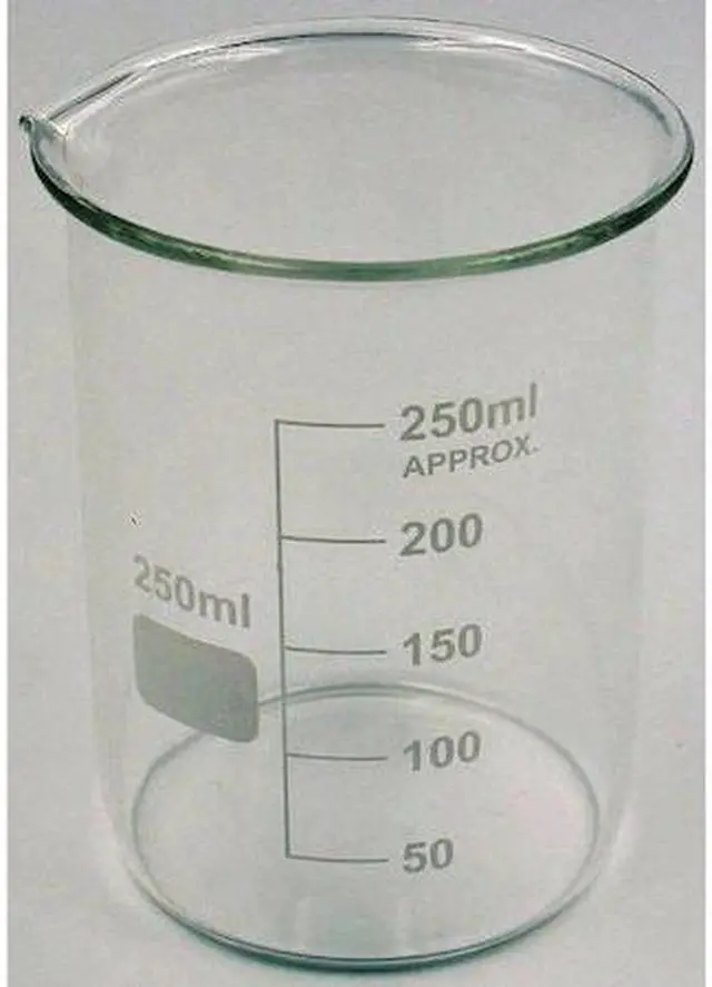 Beaker, 250 mL, 8.4 oz, Beaker Type Low Form, Labware Basic Material Glass, Labware Body Material Glass, Graduations Yes, Graduation Subdivisions 50 mL, Graduation Range 50 to 250mL, Reusable, Non-Sterile, 95 mm, 3.7 in, Autoclavable Yes, Glassware Class Not Rated, Labware Body Color Clear, Package Quantity 12. This item has been restricted from sale in the following state (s): []