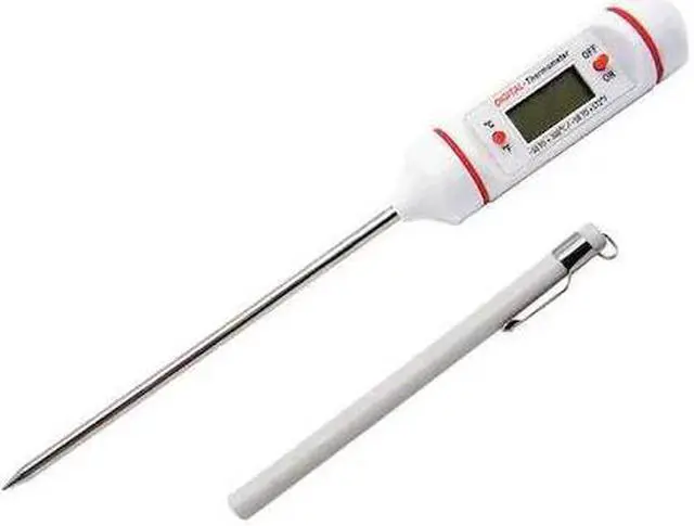 California Proposition 65: This product contains a chemical known to the State of California to cause birth defects or other reproductive harm. Digital Pocket Thermometer, Side Reading Pen Style, Body Style Pen, -58 Degrees to 572 Degrees F/-50 Degrees to 300 Degrees C, Stem Length 4.75 in, NSF Rated No, Includes NIST-Traceable Certificate No, Accuracy +/-1 Degrees C (-20 Degrees to 120 Degrees C), +/-2 Degrees C (-50 Degrees to -20 Degrees C/120 Degrees to 200 Degrees C), +/-3 Degrees C (Otherwise), 0.3 in H x 0.75 in W Display with 4-Digit LCD - 1/4 in Digit Height, Folding Stem No, Quick Reading Yes, Digital. This item has been restricted from sale in the following state (s): []