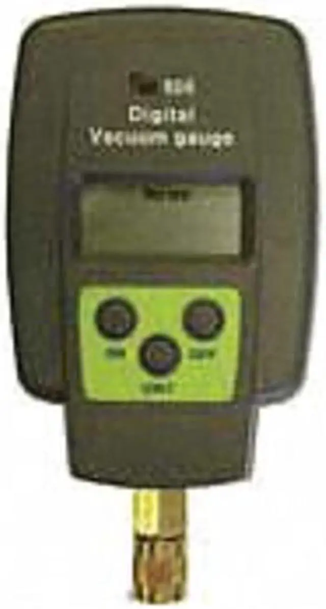 Vacuum Gauge, Digital, Measuring Range 15 to 12, 000 Microns, Ambient Operating Range (F) 30 Degrees to 120 Degrees, Connection 1/4 in Male Flare, Display 5 Digit LCD, Power Supply 9V Battery, Includes Hanging Hook, Magnets. This item has been restricted from sale in the following state (s): []