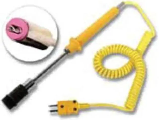 Surface Temperature Probe, Type K, Exposed, For Application Surface, Mini Plug, Probe Size 39/64 in x 4 in, Cable Length 3 ft 3 in, -58 Degrees to 1, 202 Degrees F/-50 Degrees to 650 Degrees C, Thermocouple. This item has been restricted from sale in the following state (s): []