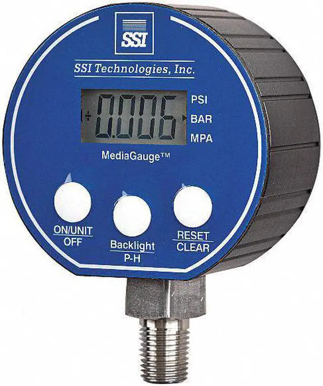 Digital Test Pressure Gauge, Accuracy +/- 0.25 Percent, Gauge Case Material ABS, Nominal Dial Size 3 in, Lens Material N/A - No lens, IP/NEMA Rating NEMA 4X, Hazardous Location Rating Not Rated, Compatible Process Media Brake Fluid, Diesel, Hydraulic Fluid, Hydrogen, Motor Oil, Nitrogen and Air, Salt Water, Sea Water, Waste Water, Sensor Material 316L Stainless Steel, Socket Material 304L Stainless Steel, Sensor Type Diaphragm, Process Connection Type NPT, Display Units Bar & Mpa, psi. This item has been restricted from sale in the following state (s): []