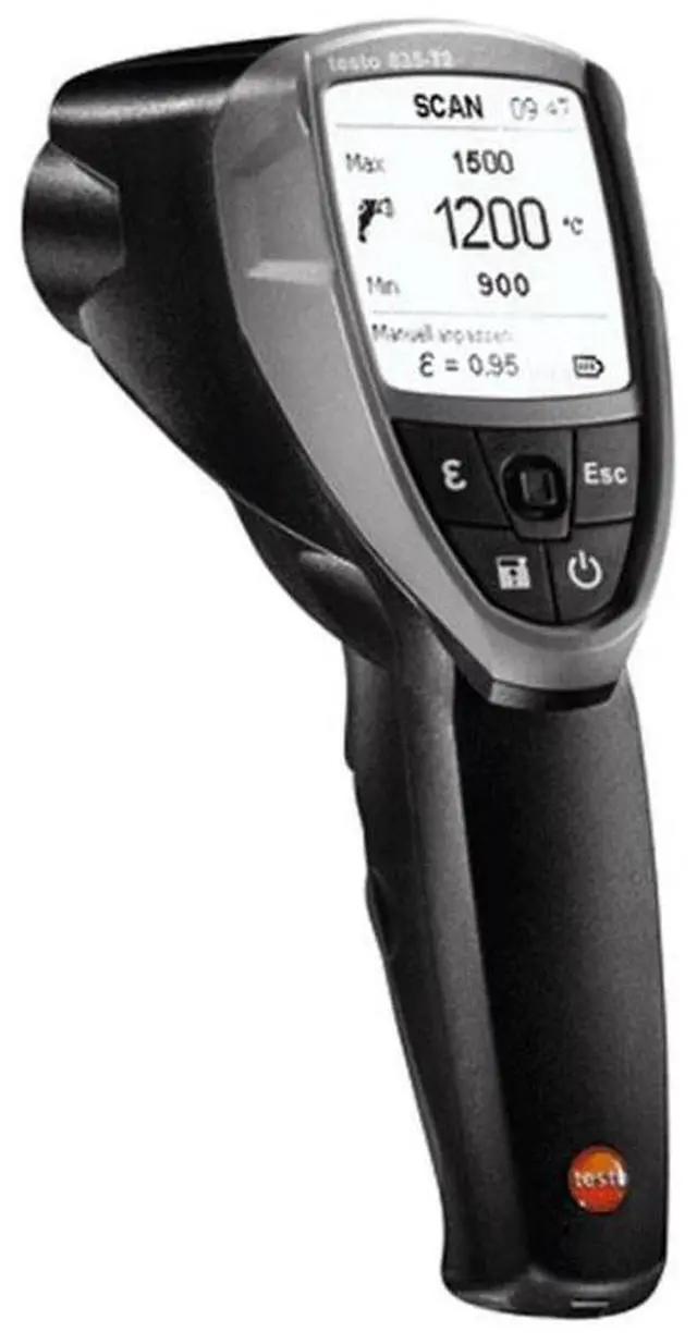Ideal for use in the glass, ceramics, or the metal industry, the testo 835-T2 high temperature infrared thermometer is the ideal professional tool for a wide variety of thermal applications in the high temperature range. It has an extremely wide temperature range, for thermal measurements up to 2,732 °F, and can be used to measure small, hard to reach, moving, or very hot objects from a safe distance.