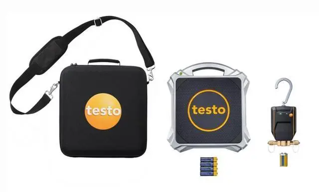 - In the kit: testo 560i Digital Refrigerant Scale and Intelligent Valve (both with Bluetooth), Shoulder Bag, Batteries