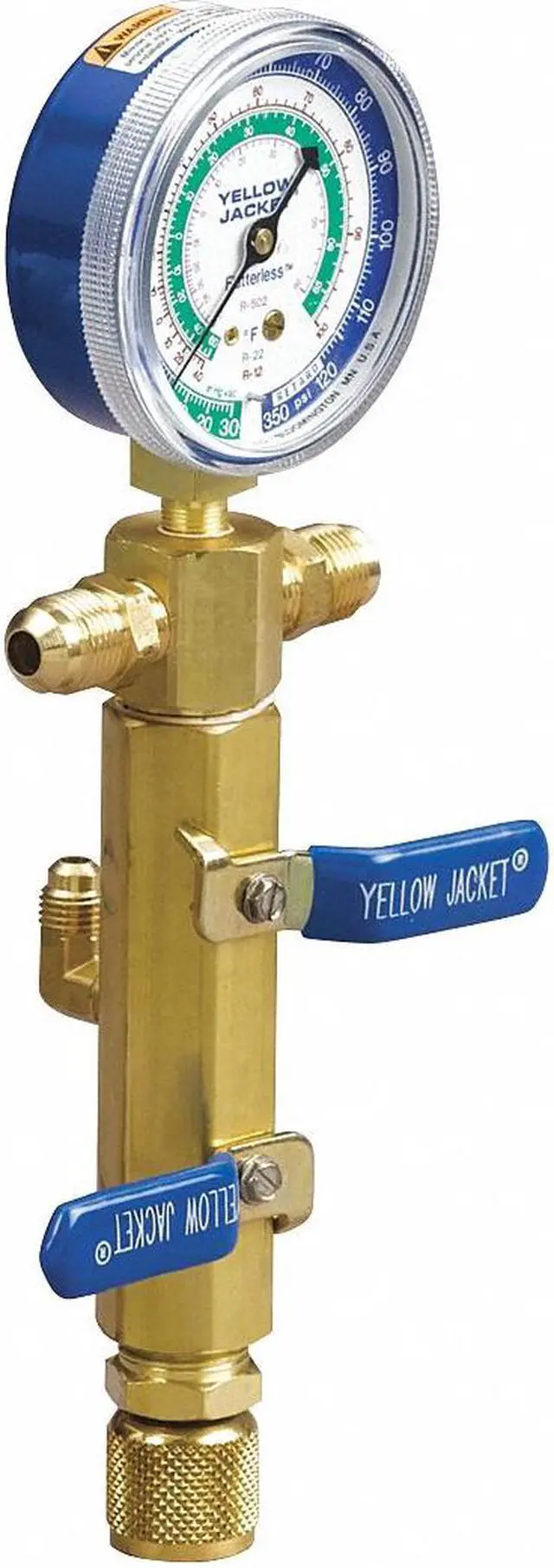 Manifold Gauge, Number of Valves 2, Multiple Refrigerants, Number of Hoses 0, Not Applicable, 0 to 350 psi, 1/4 in, Includes Not Applicable. This item has been restricted from sale in the following state (s): []