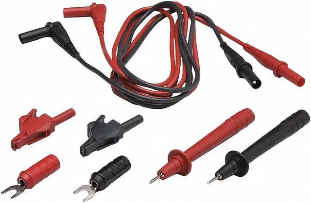 Modular Test Lead Kit, For Use With Any Multimeter, Clamp Meter, Test Instrument That Accepts a Standard Shrouded Banana Plug, Includes Modular Spade Lugs, Modular Test Clips, Modular Test Leads, Modular Test Probes, Length 3 1/3 ft, Maximum Temperature Measurement Not Applicable, Minimum Temperature Measurement Not Applicable, Test End Termination Alligator Clips, Probe, Spade Lugs, Wire Insulation Silicone. This item has been restricted from sale in the following state (s): []