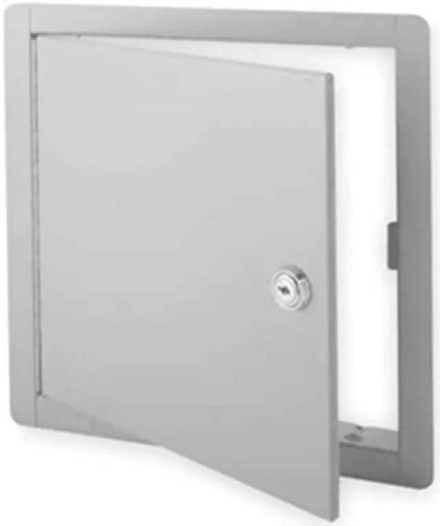 California Proposition 65: This product contains a chemical known to the State of California to cause birth defects or other reproductive harm. Access Door, Flush Mount, Uninsulated, Material Steel, Access Door Installation Wall or Ceiling, Door Height 18 in, Door Width 18 in, Rough Opening Height 18 1/2 in, Rough Opening Width 18 1/2 in, Closure Type Key Operated Cylinder Cam Latch, Hinge Type Piano, Mounting Hole Size 8 Holes Diameter 1/4 in, Finish Powder Coated, Features Medium Security. This item has been restricted from sale in the following state (s): []
