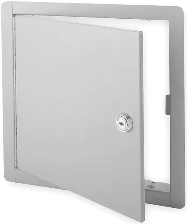 California Proposition 65: This product contains a chemical known to the State of California to cause birth defects or other reproductive harm. Access Door, Flush Mount, Uninsulated, Material Steel, Access Door Installation Wall or Ceiling, Door Height 12 in, Door Width 12 in, Rough Opening Height 12 1/2 in, Rough Opening Width 12 1/2 in, Closure Type Key Operated Cylinder Cam Latch, Hinge Type Piano, Mounting Hole Size 8 Holes Diameter 1/4 in, Finish Powder Coated, Features Medium Security. This item has been restricted from sale in the following state (s): []