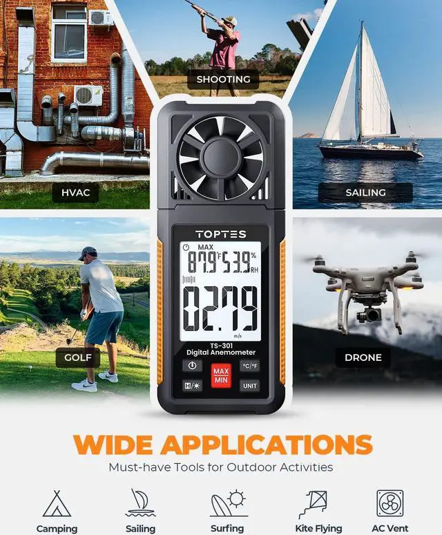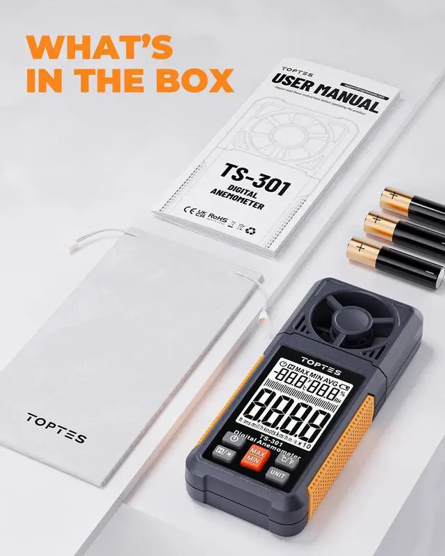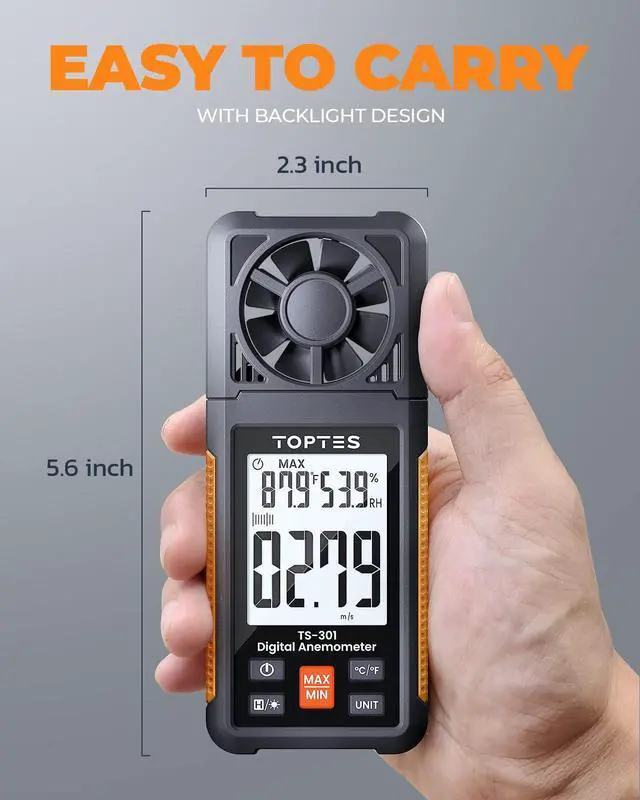 This lightweight and user friendly anemometer is perfect for outdoor enthusiasts. It's easy to hold and operate with one hand, and its compact size allows for convenient pocket storage during activities like hiking, biking, and running. Plus, the TS-301 wind gauge conserves energy by automatically shutting down after 10 minutes of non-use