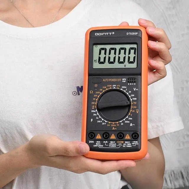 • DT9205P Professional Digital Multimeter Manual Range 1000V 10A AC DC Voltage Meter hFE Ohm Capacitance Continuity Diode Tester