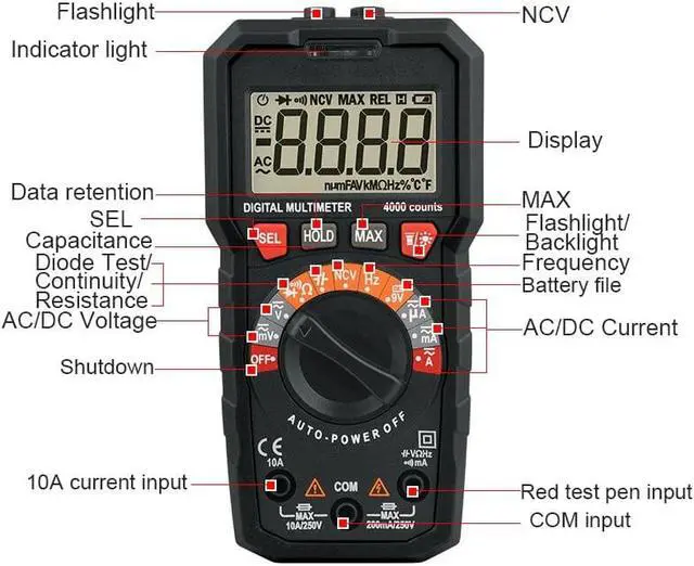 • Professional Digital Multimeter Tester Esr Meter Voltage Indicator Multitester Tools Electrician Multimeters Voltmeter Ammeter
