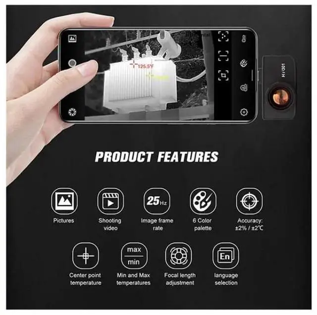 • To use Smartphone Thermal Imager, you need to download and install Smartphone Thermal Imager Android cell phone software on your phone, through which you can realize infrared observation and infrared temperature measurement function. Widely used in many fields such as medical, policing, firefighting, archaeology, transportation, agriculture and geology, it is ideal for electricians and maintenance technicians to find problem areas quickly.