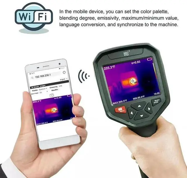 The HTI HT-A10 is not just about precision; it's also about ease of use. The device features a 3.2 -inch TFT LCD display, which allows for clear visualization of the captured thermal images. The frame rate of 9Hz ensures that you can monitor temperature changes in real-time, making it an invaluable tool for quick diagnostics. The device is powered by a rechargeable battery that provides up to 4 hours of continuous use, making it a reliable companion for extended work sessions. Its compact and lightweight design makes it easy to carry around, ensuring that you can take it with you wherever your work takes you.