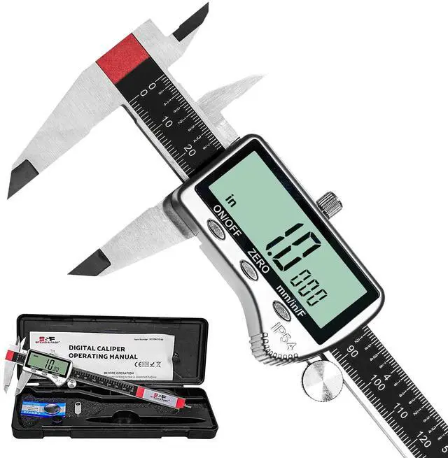 Digital Caliper Measuring Tool 6 inch with Extra Large LCD Screen DCXD6-SS-54, Vernier Caliper Digital Micrometer IP54, Measures Inch Metric Fraction by S&F STEAD & FAST