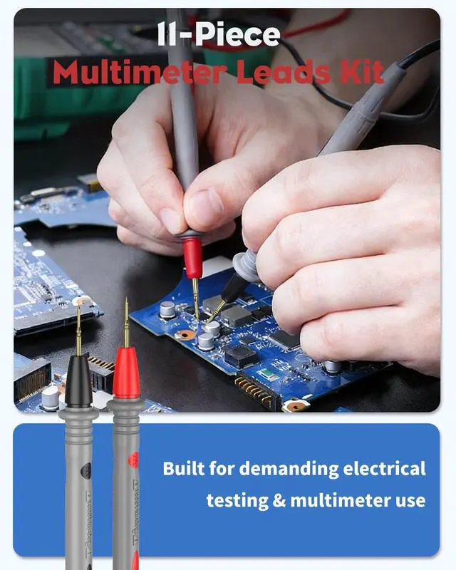 11-Piece Multimeter Leads Kit: Include 2 multimeter test leads, 2 back probes, 5 dual-ended alligator clip test leads, and 2 alligator clips for automotive diagnostics, electrical testing, and electronics troubleshooting