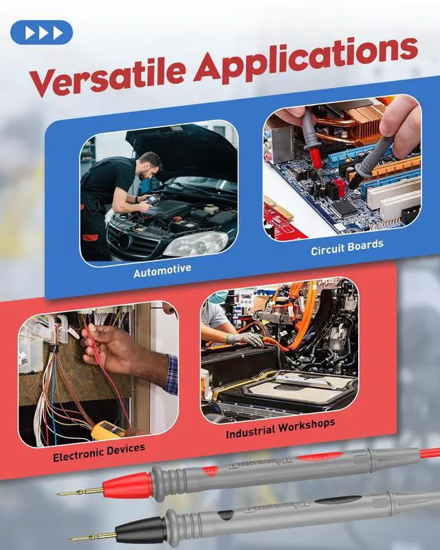Multimeter Test Leads: Support up to 20A current and 1000V voltage. Ultra-sharp probe tip ensures highly conductive connections for accurate voltage, current, and continuity measurements. Compatible with most multimeters and clamp meters