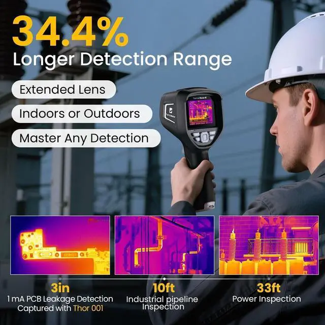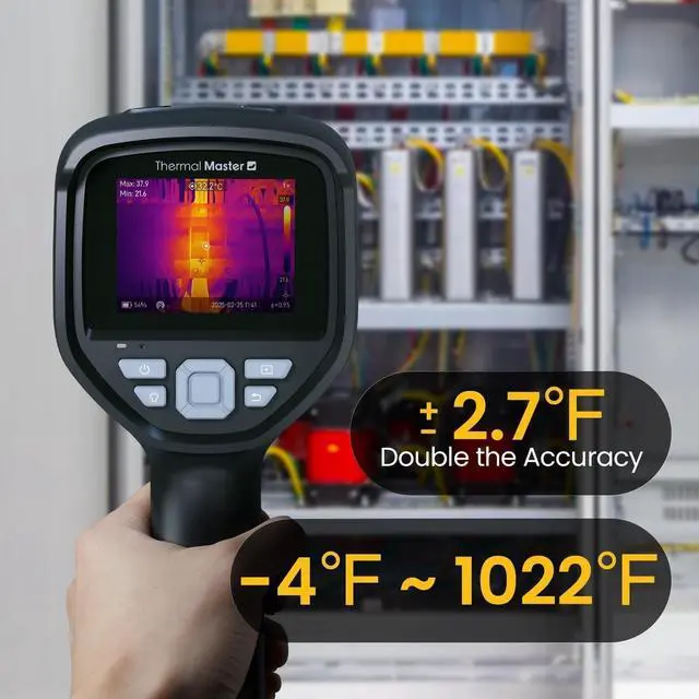 Thermal Master Thor002 thermal imager features a 2MP visible light camera and a 3.5" 640×480 IPS display for exceptional clarity. This handheld thermal imager supports a smooth 60Hz refresh rate, and offers ultra-fine 40mK sensitivity, enabling faster, more detailed inspections.
