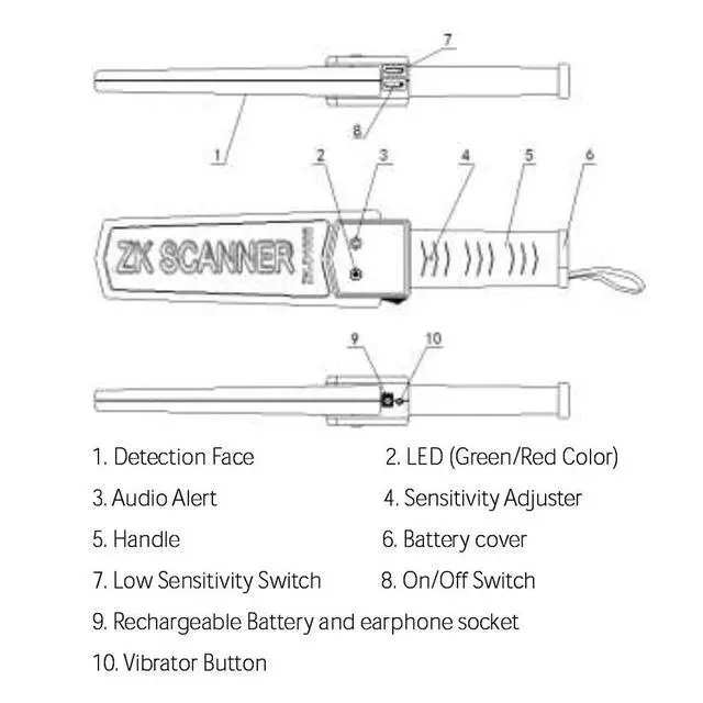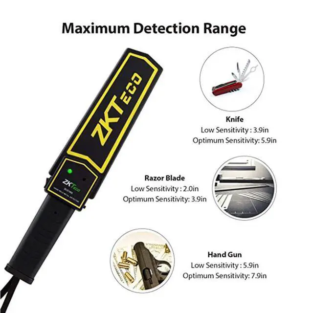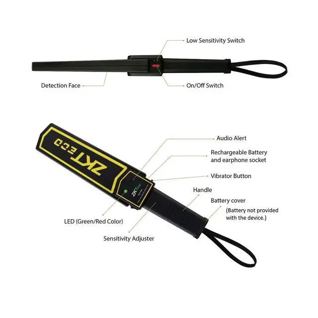 Zkteco D100S Handheld Metal Detector Adjustable Sound & Vibration IP31 W/Battery