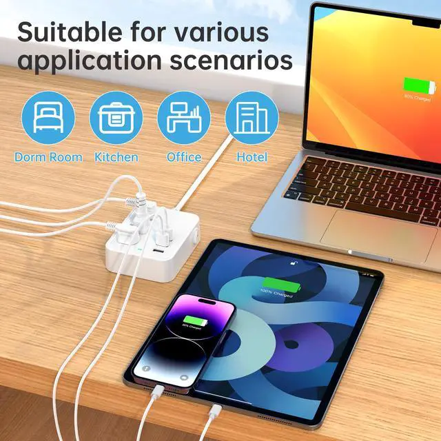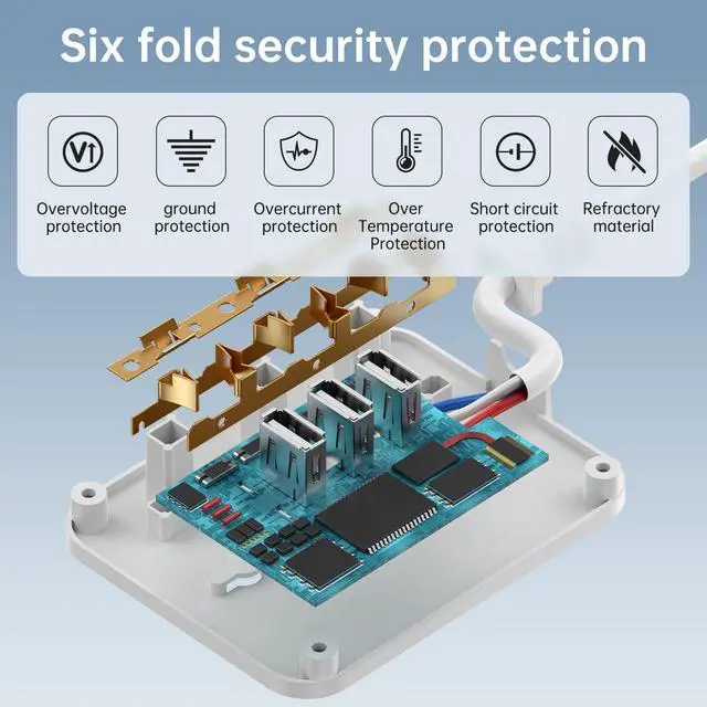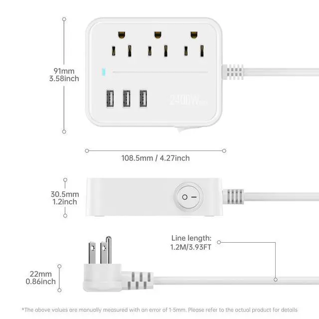 The PC-15 US Power Strip delivers 6 charging points in a compact, space-saving design. With 3 AC outlets, 3 USB-A smart charging ports (3.6A total), master switch control, and a 1.2m flat plug, this power strip is perfect for nightstands, kitchen counters, and small desks.