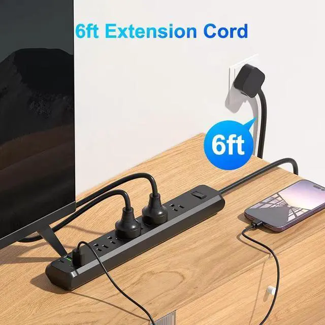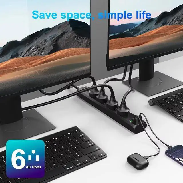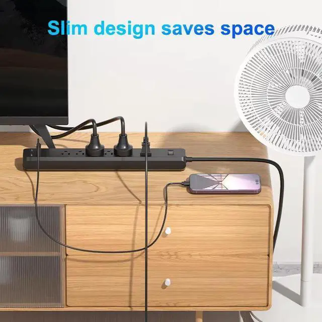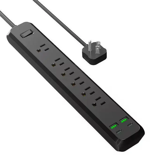 The US 6-Outlet Power Strip delivers 9 charging points in a compact design. With 6 AC outlets, 3 USB-A ports, a 2m extension cord, and surge protection, this power strip is perfect for home offices, workbenches, and entertainment centers.