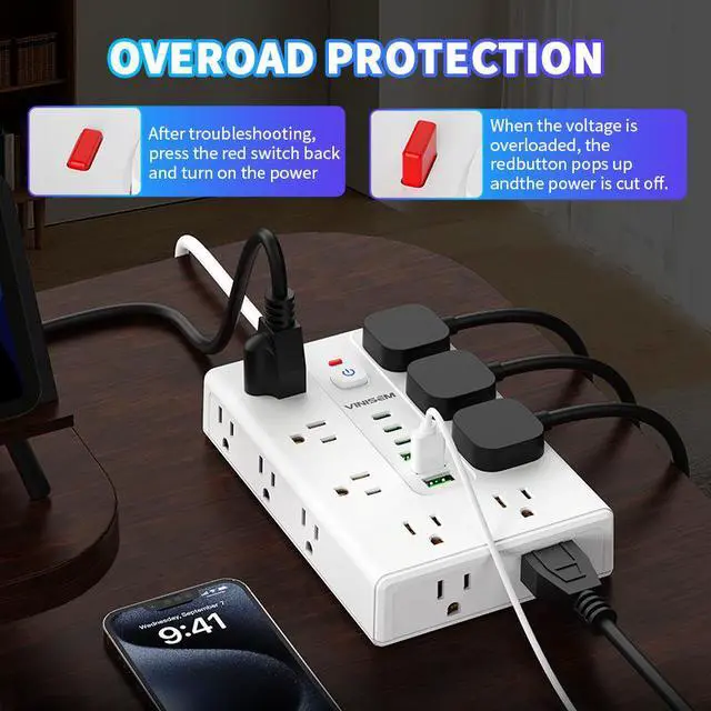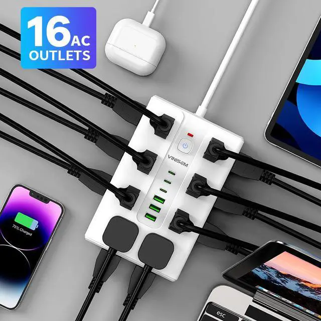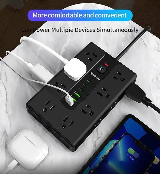 The 22-in-1 US Power Strip is the ultimate charging solution for modern households. With 10 AC outlets and 12 USB ports (8 USB-A + 4 USB-C), you can power 22 devices simultaneously. Perfect for home offices, family rooms, and entertainment centers where multiple devices need charging at once.