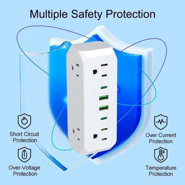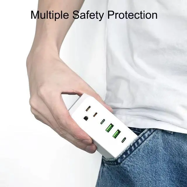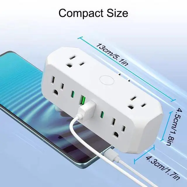 The US Type-C Tower Power Strip delivers 8 charging points in a space-saving vertical design. With 5 AC outlets (360° access), 3 USB ports (2 USB-A + 1 Type-C), and premium oxygen-free copper conductors, this compact tower keeps your desktop organized and your devices powered