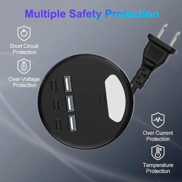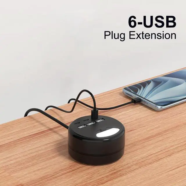 The Retractable US Power Strip solves cable clutter with its built-in retractable cord design. Pull out exactly the 1.2m (4ft) cable you need, then retract for clean storage. With 6 AC outlets and 2 USB ports, this compact power strip is perfect for dorm rooms, travel, and small home offices.