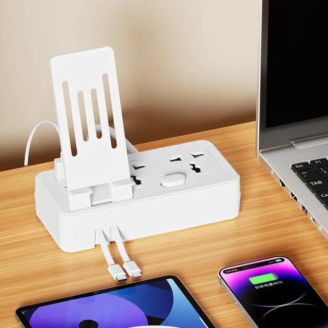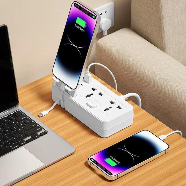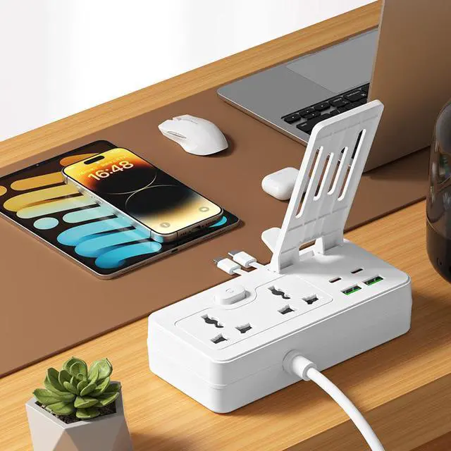 The US Universal Power Strip combines 6 charging points with a convenient built-in phone stand. With 3 AC outlets, 2 USB-A ports, 1 Type-C port, child safety shutters, and an included dual charging cable, this power strip is perfect for desks, nightstands, and family spaces.