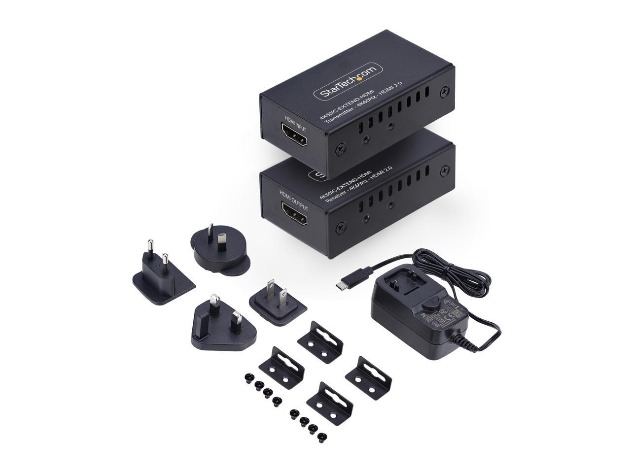 StarTech HDMI Extender Over CAT5e/CAT6, 4K 60Hz, Up to 200ft (60m), Transmitter and Receiver Kit, Power Over Cable, Compact Form Factor Model 4K50IC-EXTEND-HDMI