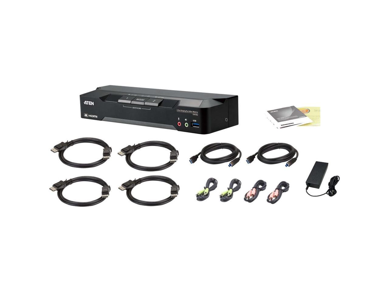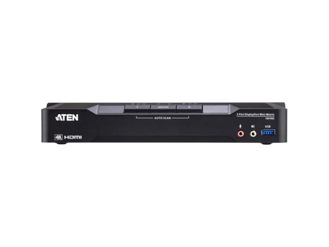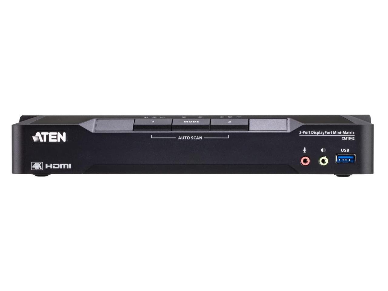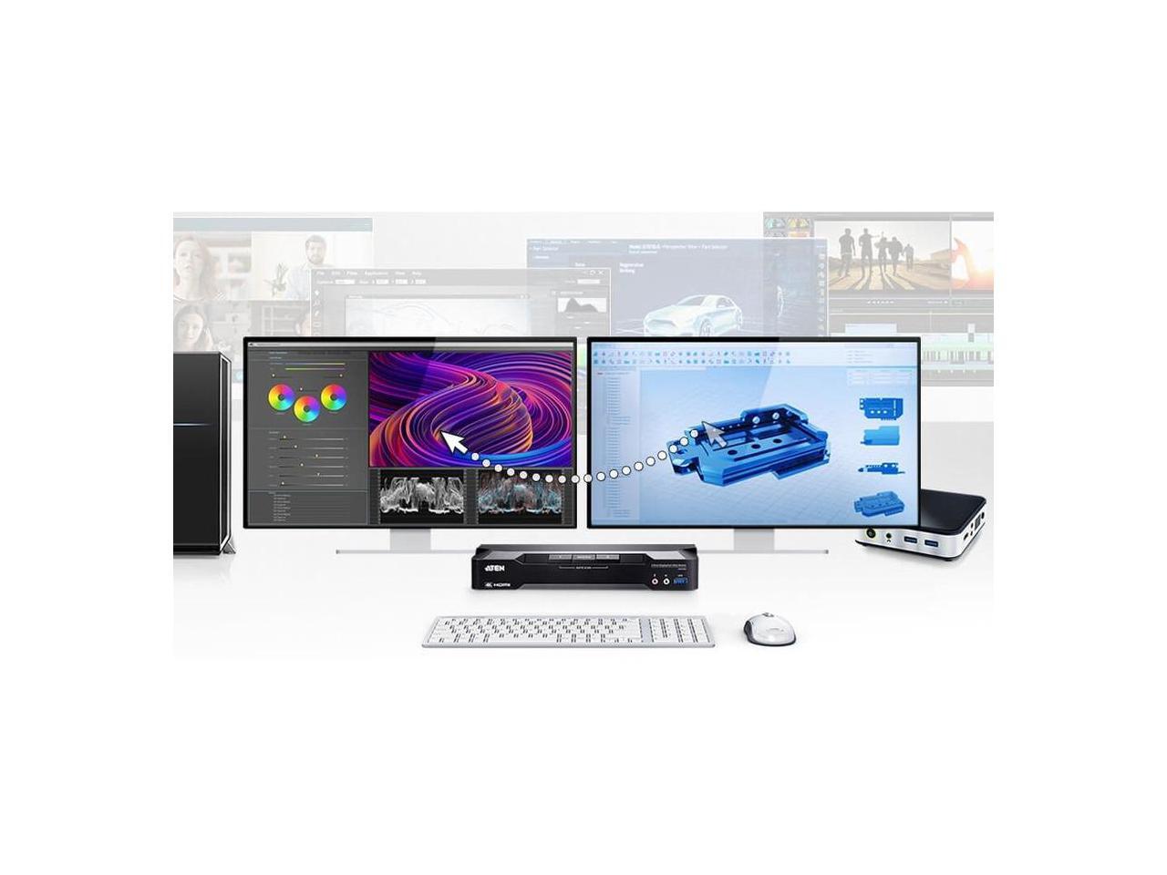 ATEN 2-Port 4K DisplayPort Dual Display Mini-Matrix Boundless KVM Switch