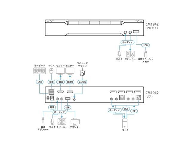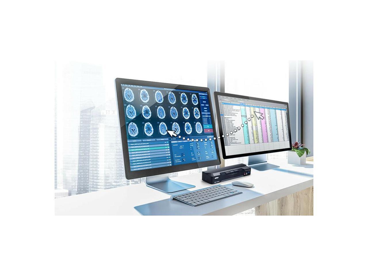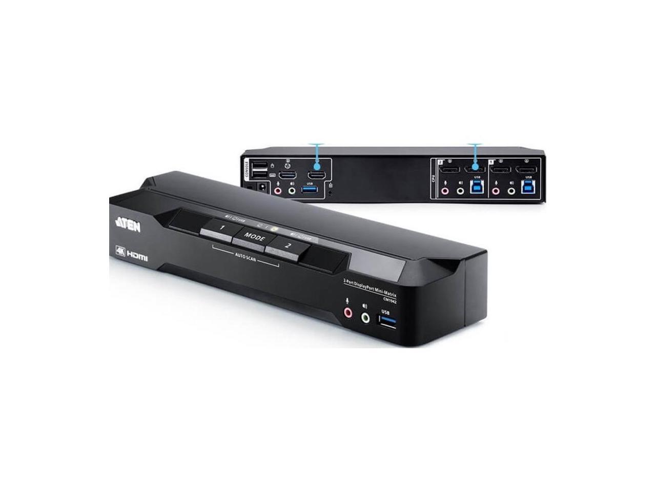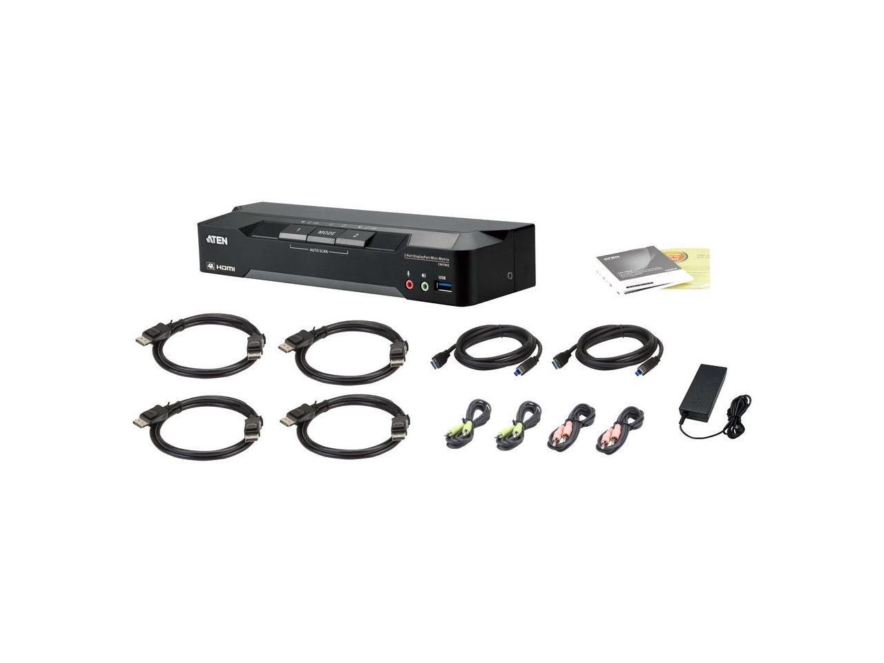 ATEN 2-Port 4K DisplayPort Dual Display Mini-Matrix Boundless KVM Switch