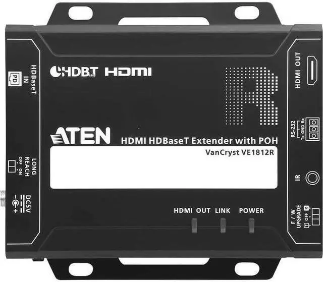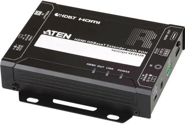 The VE1812R HDMI HDBaseT Receiver with POH is HDMI (3D, Deep Color, 4kx2k) and HDCP compatible. When transmitting HDMI / 4K with a Cat 6a or ATEN 2L-2910 Cat 6 cable, the maximum distance can reach up to 100 meters. With Long Reach Mode enabled, the VE1812R can extend HDMI signal up to 150m @1080p. The VE1812R is perfect for digital classrooms, video conference rooms, gaming or any installation that requires superior video quality.