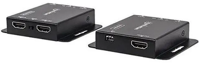 Easily extend a high-definition signal via single Ethernet cable The Manhattan HDMI over Ethernet Extender Kit is the ideal solution for connecting virtually any HDMI source (Playstation Xbox Blu-ray player satellite receiver digital recorder etc. ) to an HD display or projector at up to 50 m (164 ft. ) via a single Cat6 Ethernet cable. These powered HDMI Extenders provide reliable 1080p resolution video and multichannel audio transmission over longer distances than HDMI cables alone. Plus the transmitter module has an additional HDMI output port so a second monitor can be placed in a control closet or run to second display.