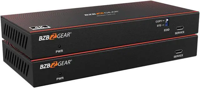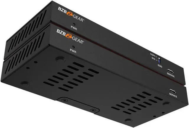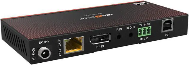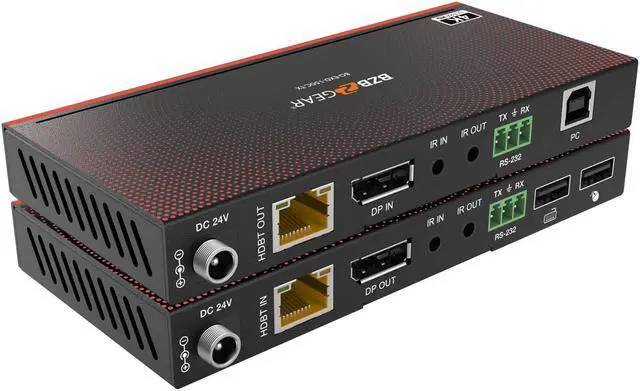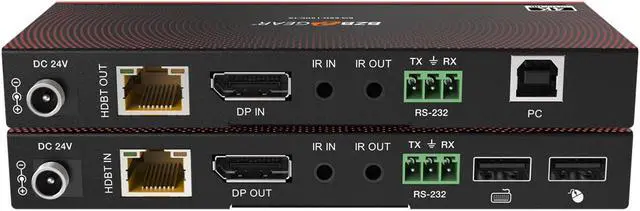 The BG-EXD-150C is a 4K60 DisplayPort (DP) range extender capable of transmitting DP video, bi-directional IR, and RS-232 control signals, as well as USB KVM signals. It can transmit signals over distances of up to 328ft/100m for a 4K60 signal and 492ft/150m for a 1080P signal using a single CAT6 cable.