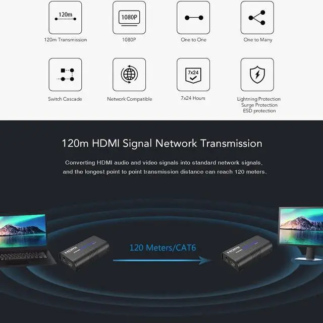 2. Extend HDMI signal over a single CAT6 up to 120m