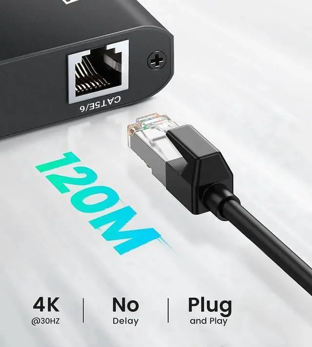 HDMI Extender: This HDMI extender extends HDMI video & audio signal simultaneously up to at least 394ft (120 meters) over single CAT5e/6/7 ethernet Lan cable, saving your cost on long distance HDMI signal transmission.