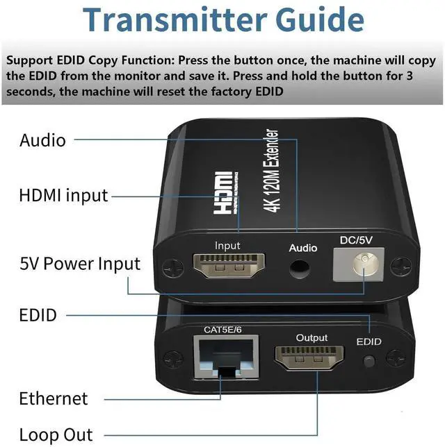 NOTE: Cat5e above cable is needed to pair the sender and receiver
