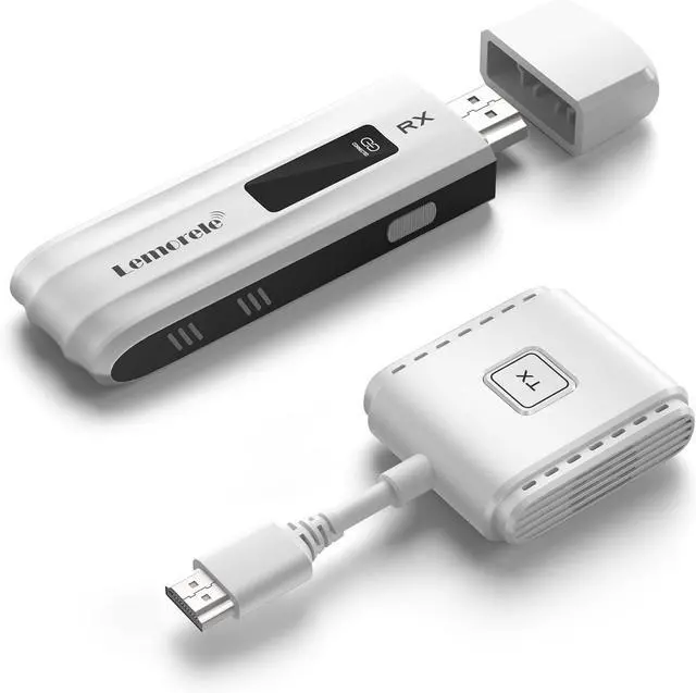 Plug and Play & Portable Design: The Lemorele wireless HDMI transmitter and receiver kit is plug-and-play, requiring no software installation, network connection, or cables. So the HDMI wireless extender keeps your desktop simple. Wireless HDMI adapter compact and lightweight design makes it ideal for both office use and travel