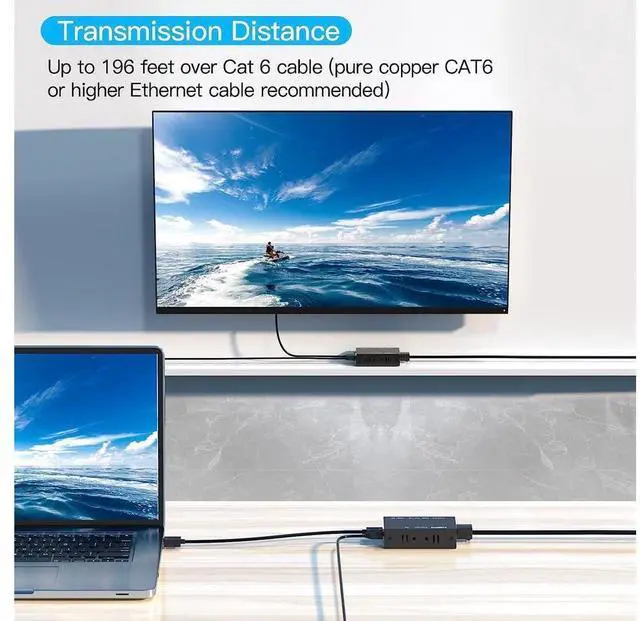 • Lossless Transmission: This HDMI ethernet extender transmits HDMI signals without singal loss via Ethernet cable. Zero latency, no loss of quality.
