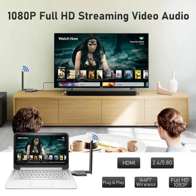 Ultra-High Definition Picture Quality: Wireless HDMI extender support 4K decoding and 1080P/60Hz Ultra High-Definition output for a clear and smooth picture, HDMI signal connection realizes high-quality video signals with low-latency, no-latency, and no-tear video, providing an exceptional vision and experience for family gatherings, gaming, video conferencing, and projections.
