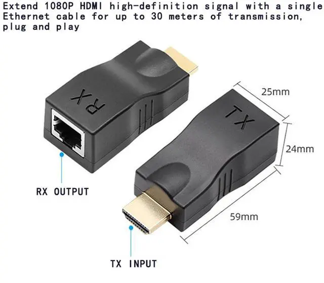 - The transmitter (TX) and receiver (RX) units feature gold-plated HDMI connectors for reliable signal transfer and standard RJ45 ports for network cable connection. These compact, durable adapters are ideal for home theater setups, conference rooms, or any scenario requiring HDMI signal extension.