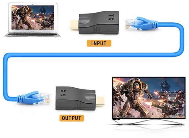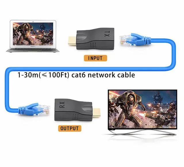 - Extend your HDMI connection over long distances with this versatile HDMI to Ethernet adapter set. This pair of adapters allows you to transmit high-quality HDMI signals through standard network cables, making it perfect for situations where direct HDMI connections aren't practical.(NOTE: The unstable signal transmission during use may be related to the Ethernet cable. It is recommended to use Cat6 Ethernet cable)