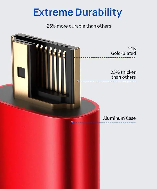 - With 24K gold-plated connector, it withstands 20,000+ insertions, which ensures stable connection and longer service life.