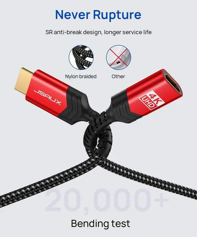 JSAUX HDMI Extension Cable Supports 4K@60Hz UHD Resolution