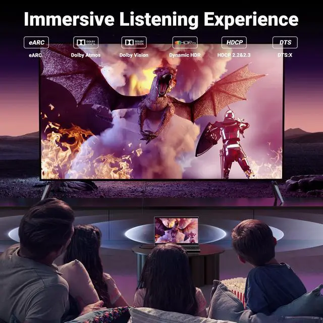With 8K HDMI's unique eARC/dynamic HDR and 12 Bit color processing technology, each scene of the video is every frame, with more ideal depth, brightness, detail, contrast, and wider color gamut.
