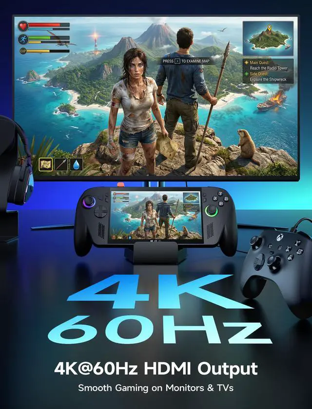HDMI 4K@60Hz & 2K@120Hz OUTPUT: Output to your TV or monitor at 4K@60Hz for stunning clarity or 2K@120Hz for ultra-smooth high-refresh gameplay. Whether you're in a living room or gaming den, get a crisp big-screen experience on any HDMI-enabled display.